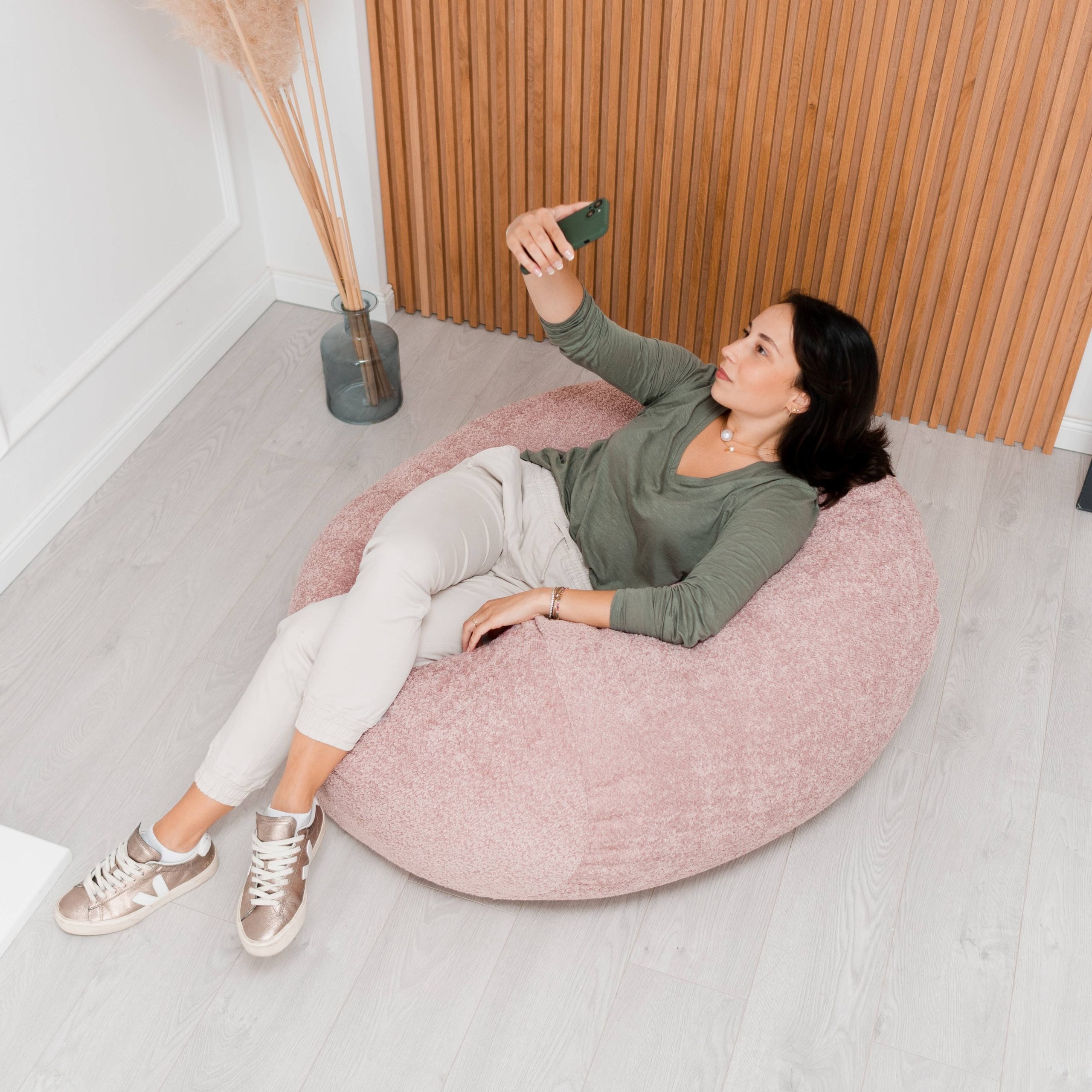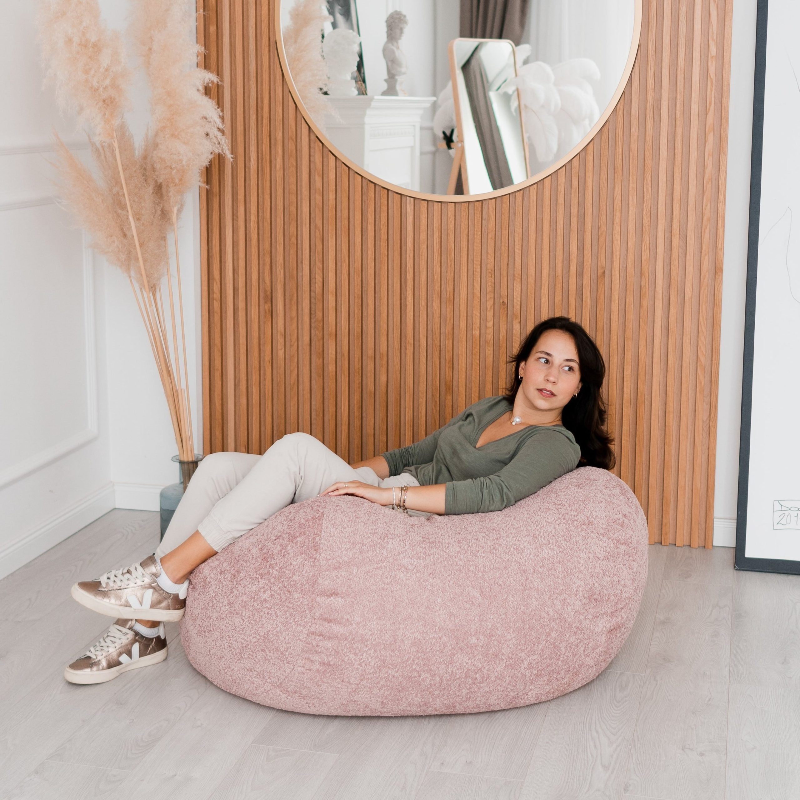 Relaxingly soft bean bag covered in irresistible Teddy material.
